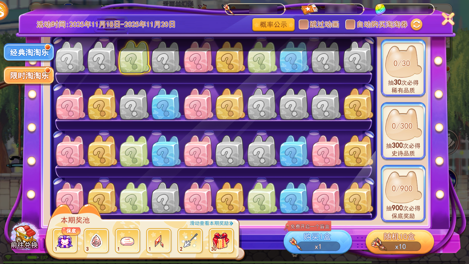 岛民们好,又遇欧皇日,幸甚与君度~黑月带着2025年11月刊的欧皇召集令来了!完成欧皇任务,奖励翻倍得! 欧皇活动焕新升级!专享【粉色龙猫坐垫】打包送给你! (每月共有4期,每期抽取50位幸运用户赠送,共计200个坐垫免费放送) 更有创意理发券、装备强化晶石、爱丽丝之矢、高级宠物亲密度药等丰富好礼等你来拿! 敲重点!!! 1.我们为月度欧皇奉上「坐垫自选礼盒」!可自由选择「暖被坐垫」和最新上线的「瓶中影-深情坐垫」 2.奖励发放以您近期领取签到奖励的角色为准 限时淘淘乐活动开启啦,来和黑月看看都有什么好东西~ 坐等欧皇们展示他们的闪光时刻,让小伙伴们全来吸他们的欧气,也早日步入欧皇的世界~ 奖励多多!福利多多!岛民们可不要错过啦! 【活动时间】 11月18日—11月20日23:59 活动累计参与满2天,带图并谈一谈自己今天在【限时淘淘乐】抽奖的欧皇瞬间。 Eg:欧皇可以说说自己在【限时淘淘乐】中,是多少发抽到了大奖的? 注意:当日多次展示欧皇时刻截图,每个账号和游戏角色仅统计一次。活动期间累计参与2天及以上玩家,才可获得奖励。(请勿重复晒图,若多名玩家出现同一张图,则以第一位发送时间的玩家为准,若发现盗图将取消活动资格,并严肃处理) 1、活动结束后,累计参与2天的岛民们将会获得欧皇大礼:(创意理发券*5、装备强化晶石*10、爱丽丝之矢*5、高级宠物亲密度药*10); 2、活动结束后,官方从累计参与2天的岛民们中抽取50位幸运岛民获得欧皇专属-【暖被坐垫】(永久) ; 3、一个月内连续参与4次【欧皇主题】活动的用户可以获得欧皇专属-【坐垫自选礼盒】(永久坐垫二选一)。 ---坐垫自选礼盒--- 【领取方式】 奖励将直接通过邮件发送到角色上。 ※黑月小提醒:此奖励为直发礼包,中奖的玩家请去游戏内邮箱查看~参与的岛民们先在【39游戏盒子】签到界面绑定角色,以您近期领取签到奖励的角色为准。 【活动规则】 1、回帖禁止带有色情、政治、推广、外链、谩骂等违规内容。一经发现,相应内容删除处理,对应账号及角色不参与评奖; 2、为确保活动公平性,所有参与活动的主评论必须紧密围绕活动主题展开,不符合要求的评论将不纳入评奖范围; 3、请前往专区【每日签到】领取签到奖励,我们将根据您最后使用的签到角色进行奖励发放; 4、每个游戏角色仅可参与一次,多账号参与(同角色)仅发放一份奖励; 5、将以游戏内邮件形式发放奖励,可在游戏内【邮件】中查询是否获得奖励; 6、奖励将于活动结束后5个工作日内进行公示并发放; 7、活动仅限官服玩家参与。